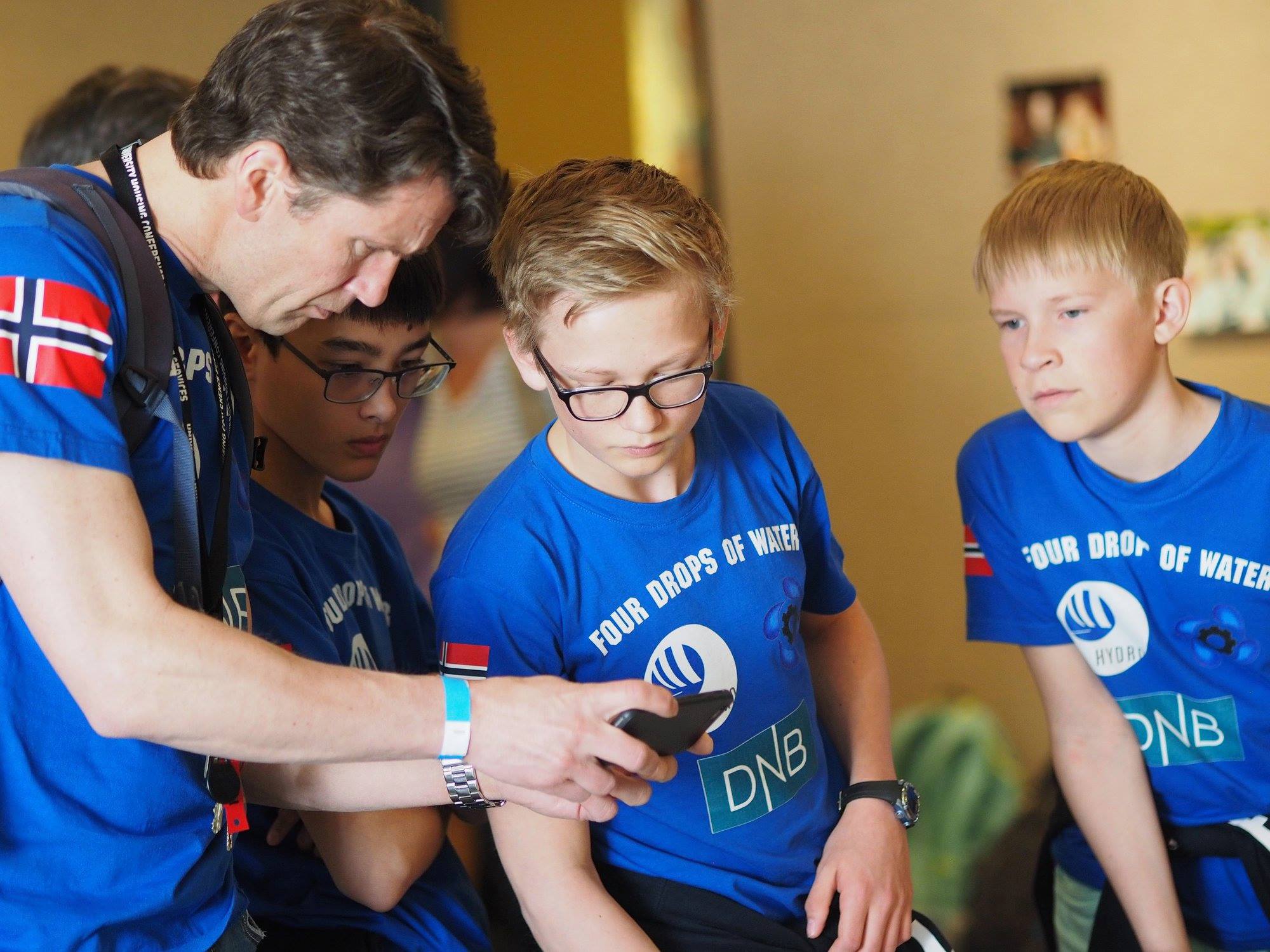 Martin og Kristian deltok i de tre første sesongene sammen med sin barneskole. De presterte bar i den kategorien de jobbet med, men nådde aldri til topps i alt. I Hydrodynamics sesongen (2017), bestemte de seg for å gjøre det privat. Henry, en venn av Martin, ble med på laget, og sammen med dannet de Four Drops of Water. Martin sitt loft ble brukt som arbeidsrom, og før konkurranser ble familiemiddager uaktuelle, for da skulle robotbordet ned i stua slik at de kunne øve på robot.